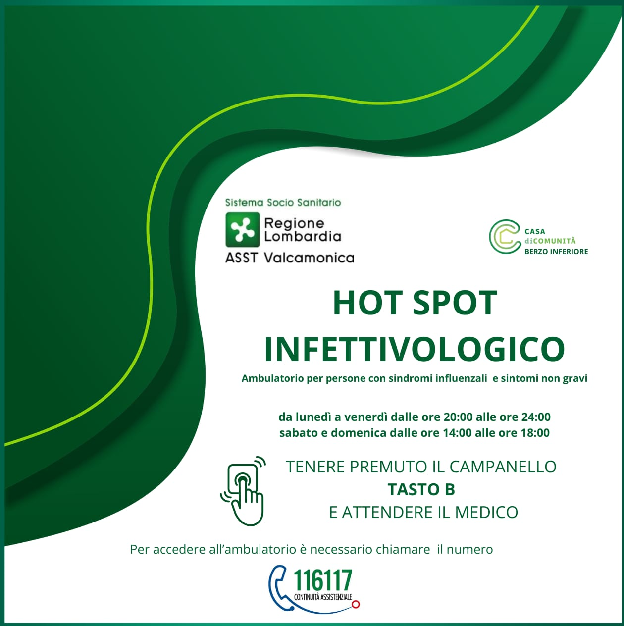 Attivazione dell'hotspot infettivologico presso la Casa di Comunita' di Berzo Inferiore per il trattamento dei pazienti con le sindromi influenzali.